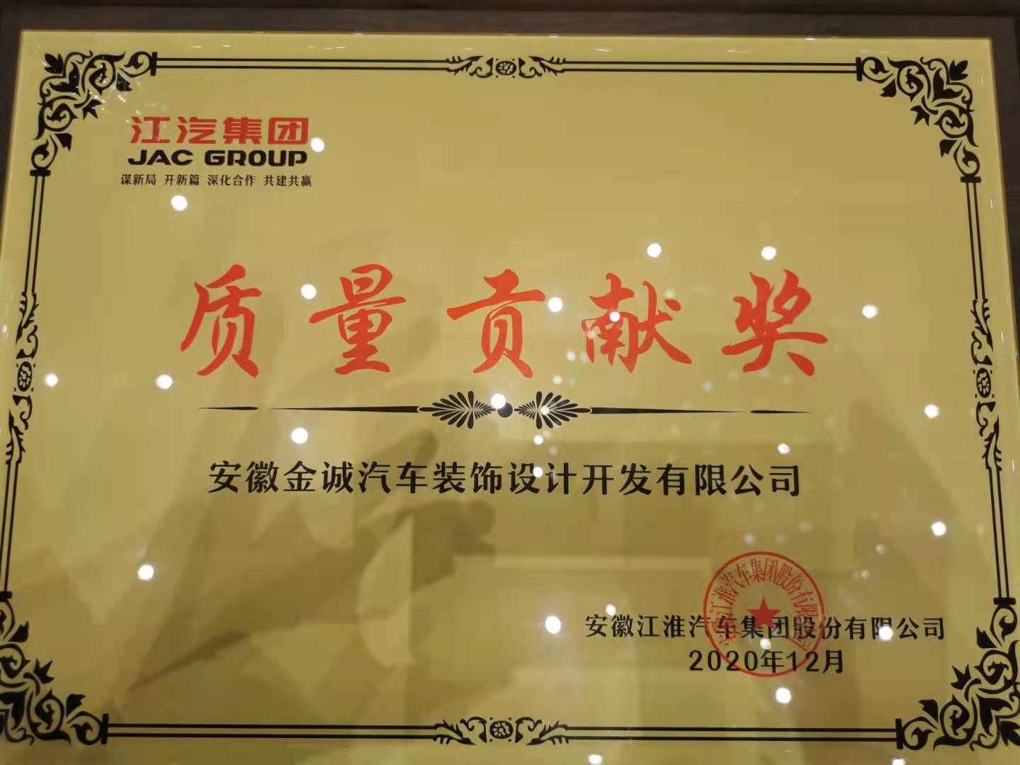 我司獲得江汽集團2020年質(zhì)量貢獻獎